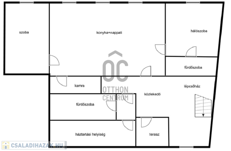 - földszint cc 100nm-s : nappali-konyha, 2 hálószoba , kamra, fürdőszoba, és egy külön iroda helyiség mosdóval , található