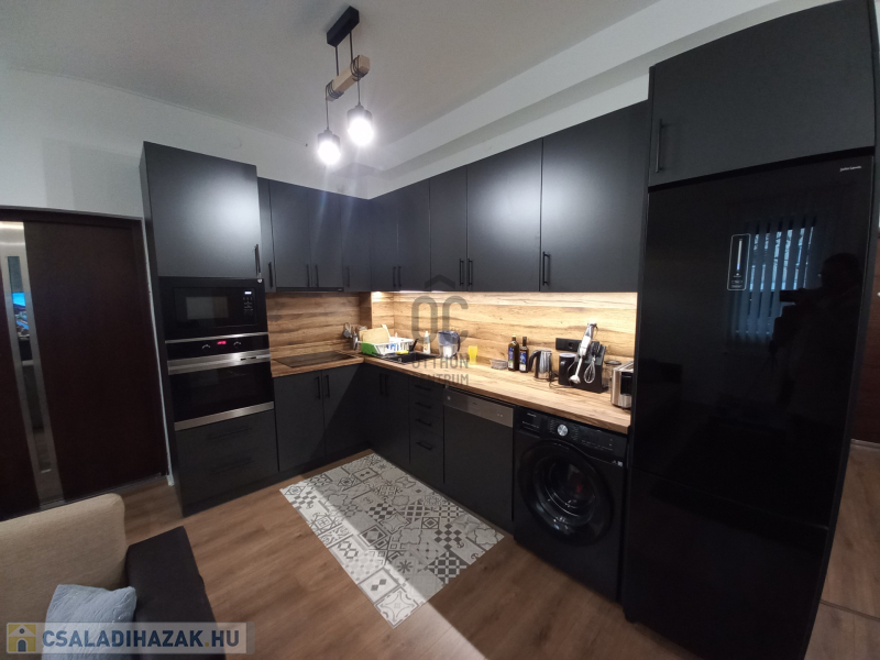 - emeleti lakórész cc 100nm mely :tágas nappali konyhával, 2 fürdőszoba-mosdó, 2 hálószoba, kamra-háztartási helyiség, és egy 3 nm-s erkély