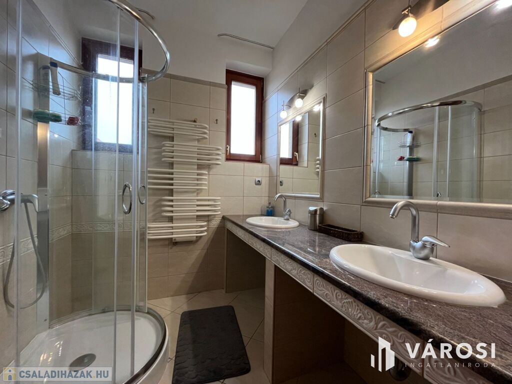 Ez a 3 szintes, 296 m²-es lakótérrel rendelkező, kiváló állapotú ingatlan ideális választás akár nagycsaládosoknak vagy üzleti ingatlant keresőknek is. Az összesen 5 hálószobával, 2 tágas nappalival, nagy étkezővel, konyhával kamrával és 3 modern fürdőszobával rendelkező ház kényelmes életet biztosít az egész család számára. Az ingatlan külön fürdő és WC helyiségekkel is rendelkezik, ami tovább fokozza a lakók kényelmét.