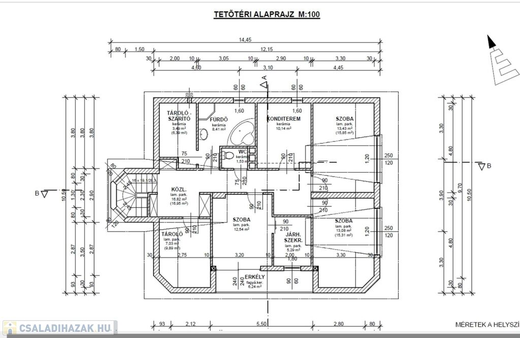 Tetőtér (nettó 94,9 m²) – 4 szoba, melyből egy konditeremnek van berendezve, fürdőszoba, külön Wc, gardrób és tárolók