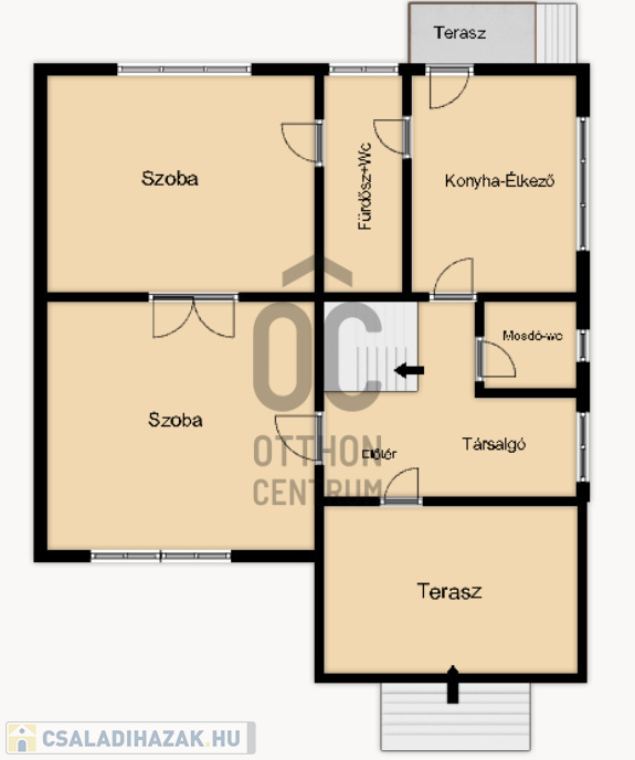 - A földszinten két nagy méretű szoba a tetőtérben egy szoba van kialakítva,