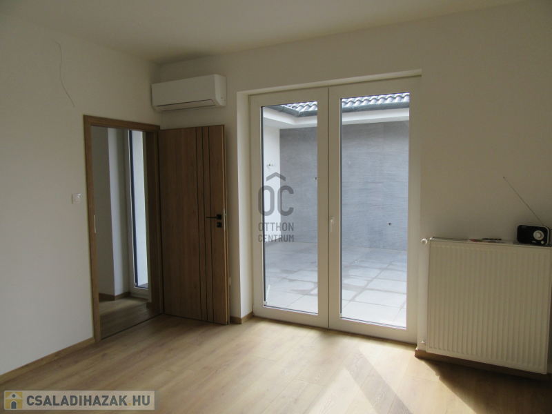 A házba belépve tágas előszoba fogad minket, innen jutunk a hatalmas (46 nm) nappali-konyha-étkezőbe. A lakótérből nyíló teraszok egyike egy különleges 23 nm-es átriumos szeparált terasz. Minden szoba tágas, világos és jól bútorozható. A zárt garázson kívül lehetőség van a telken belül több autó beállására.A szobákban és a vizes blokkokban padló és radiátoros fűtés, a többi helyiségben padlófűtés van, a ház helyiségeinek hőmérsékletét külön-külön wifis termosztáttal szabályozhatjuk.Az ingatlan kivitelezése magas műszaki tartalommal, színvonalas minőségben készült, igényes hideg-meleg burkolatokkal. Minden nyílászáró elektromos, hőszigetelt aluredőnyökkel és rovarhálóval felszerelt, a redőnyök helyiségenként távvezérelhetőek.