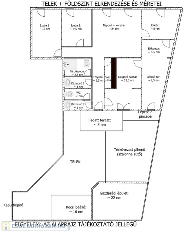 Az ingatlan alap méretei: