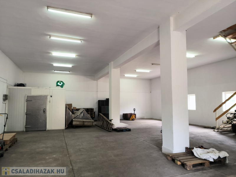 Az irodáknak kialakítható lakótérben 4 szoba+ amerikai konyhás nappali+ kamra+ fürdőszoba, w.c található. Elrendezése praktikus, tágas helyiségek, szobái külön nyílóak. Fűtése gázcirkó, padló és radiátor hőleadókkal. A villany és vízhálózat a mai elvárásoknak megfelelő, 3 fázis bevezetve. Az alsó szint átalakítás nélkül is kiválóan alkalmas kereskedelmi célokra, amely hátsó kijárással is rendelkezik a raktárépület felé. Önálló közmű órákkal rendelkeznek.