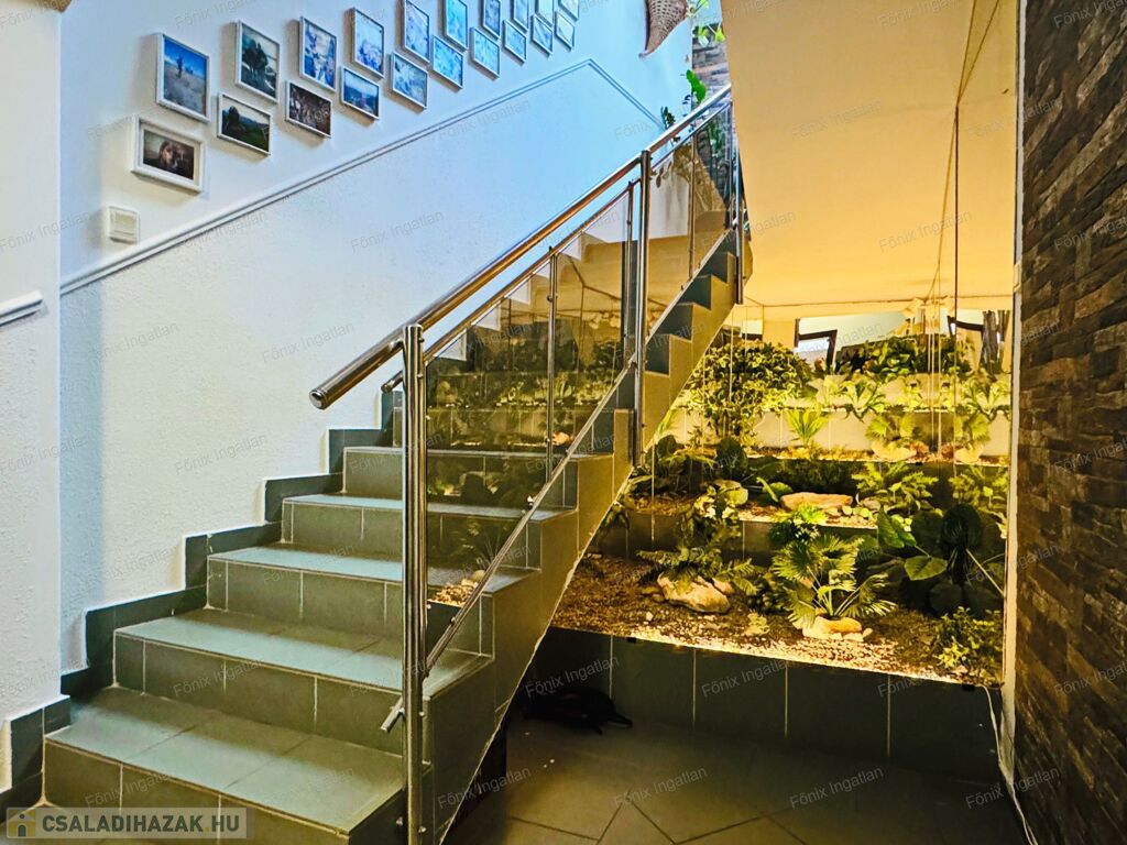 hűtőkamra, rengeteg tárolási lehetőség, cc 100 m2 pince, teherfelvonó, stb.