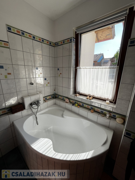 Eladó a Liget Lakópark legkedveltebb részén 460 m2 telken épült 195 m2 öt szobás zártsorú beépítésű családi ház.