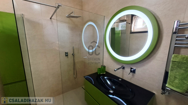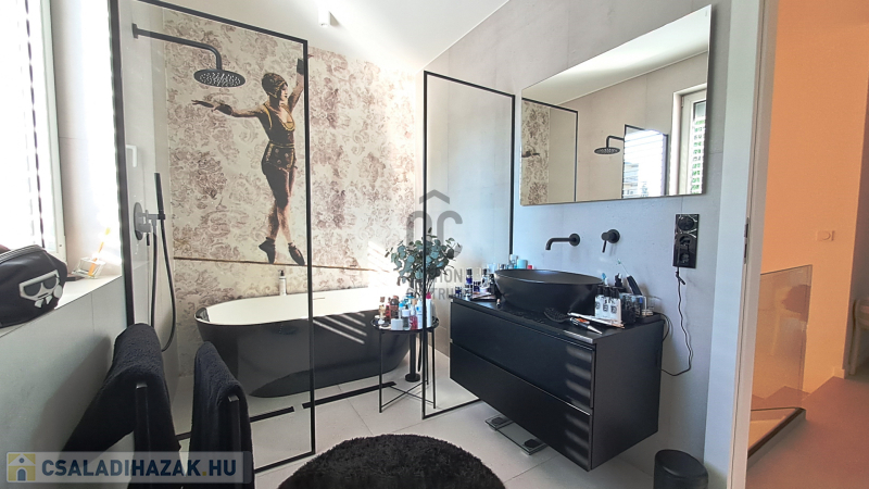 - tágas, formatervezett, nívós anyagokból megvalósított fürdőszoba