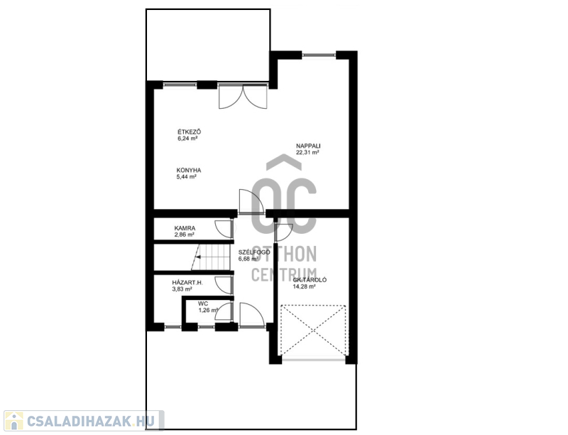 -földszinten tágas nappali-konyha-étkező