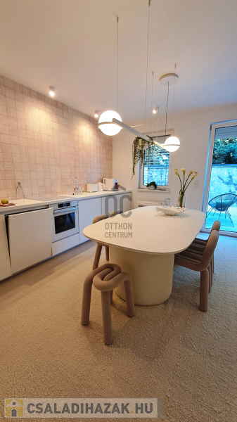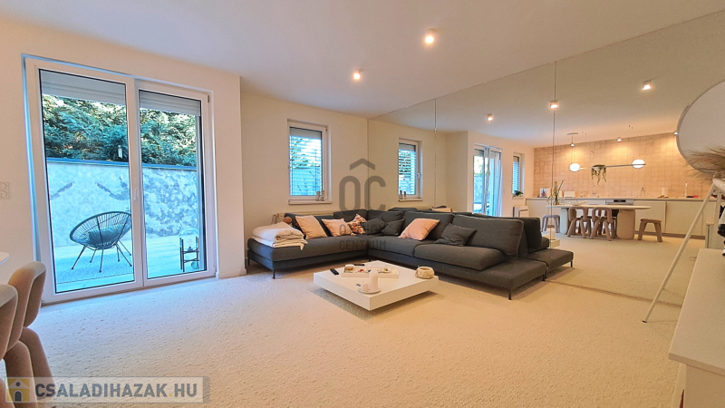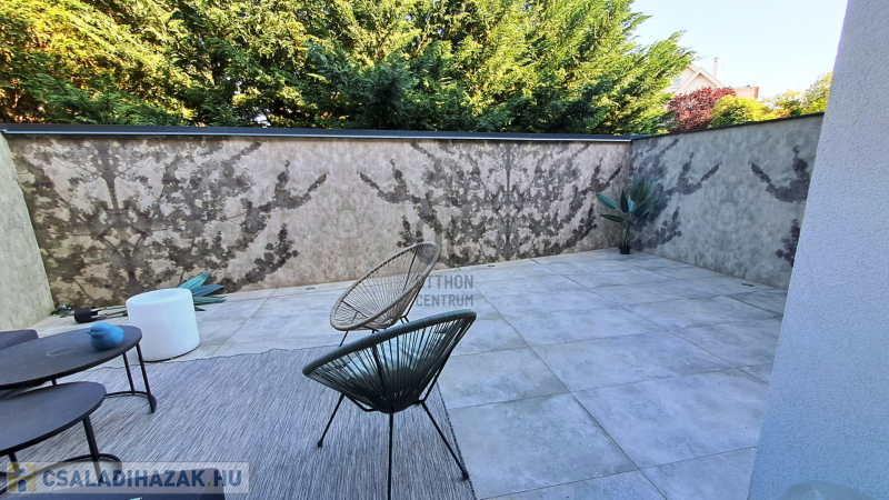 Széchenyi kertben Nappali + 3 szobás, 130 nm-es, gardróbos, nagy, esztétikus kialakított terasszal és garázskapcolattal rendelkező erkélyes, stílusos, 2011-es építésű, különleges hangulatú sorházi ingatlan eladó