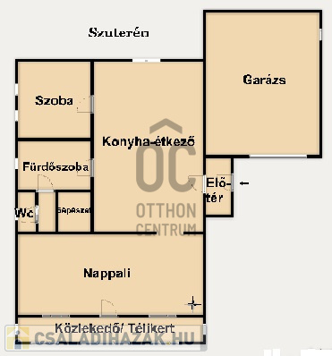 Szuterén helyiségei: nappali, konyha-étkező, hálószoba, fürdőszoba,wc, gépészet, garázs.