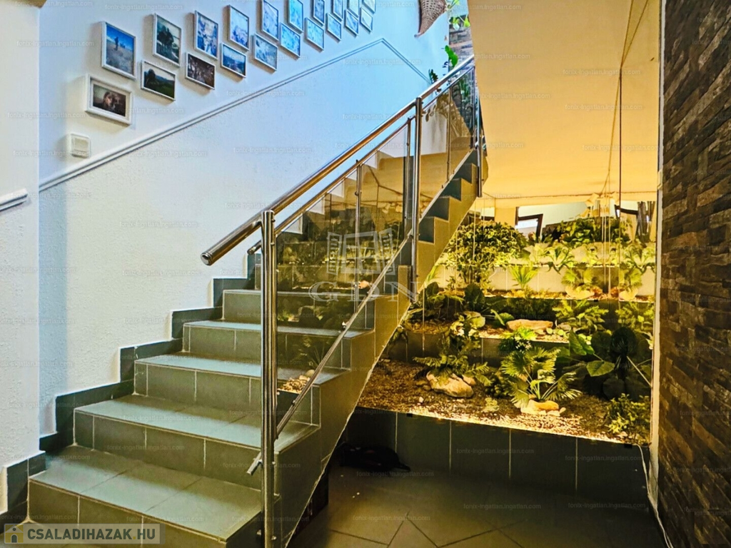 A tető is teljesen megújult és új beton cserepekkel látták el. A földszinten új műanyag nyílászárók, míg az emeleten új fa nyílászárók lettek be építve, melyeket hő védő rolókkal láttak el. Gyönyörű és impozáns terekkel felújított lépcső és lépcső fordulok teszik még igényesebbé a házat.