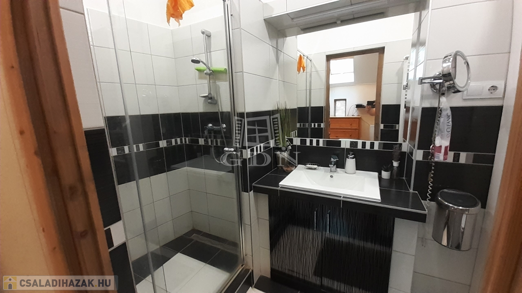 - Emeleten: előtér, mosókonyha, spájz, 2 fürdőszoba, mosdó, közlekedő, nappali-konyha-étkező, 2 szoba, lépcső tér.