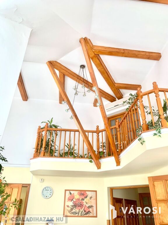 Ez a kiváló állapotú, 270 m² lakótérrel rendelkező ingatlan tökéletes választás azok számára, akik szeretnék élvezni a modern élet kényelmét egy csendes, zöld övezetben, mindössze karnyújtásnyira a belvárostól. A ház egy 573 m²-es, parkosított telken található, amely automata öntözőrendszerrel és kertvilágítással biztosítja az udvar gondozottságát.