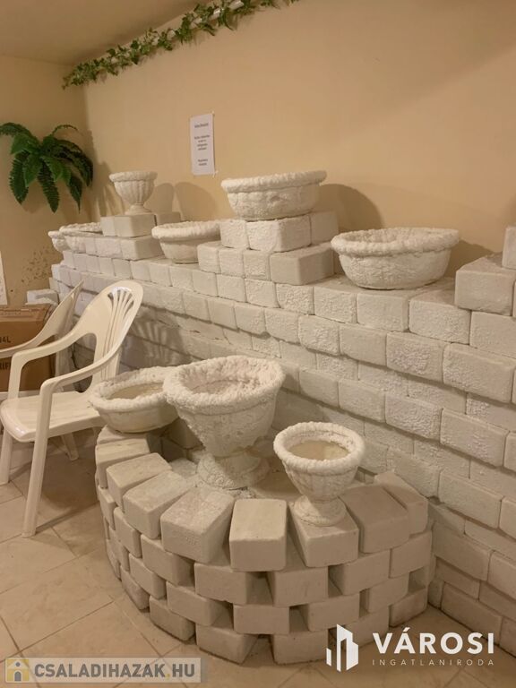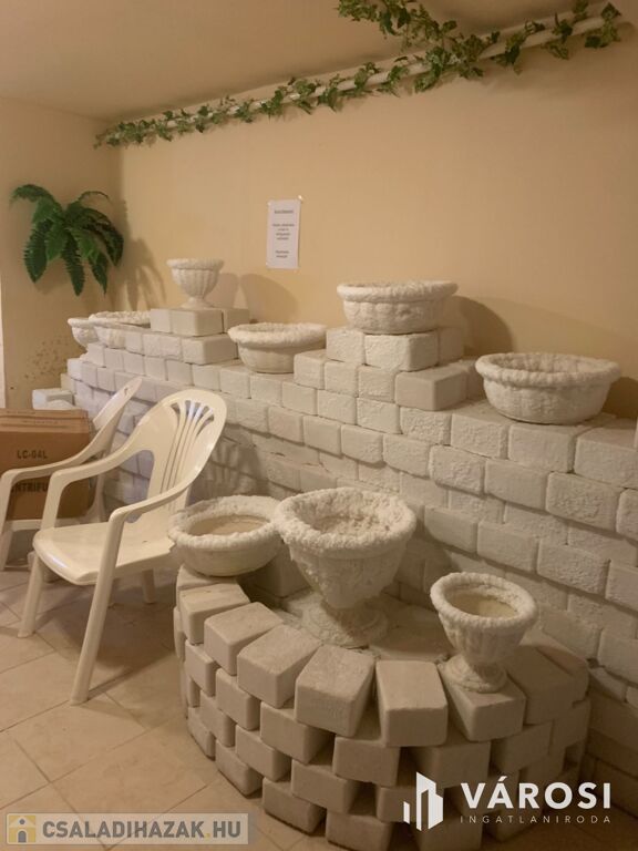 •Pince: 110 m² (gépészet, kazánház, raktárhelyiségek, 2 autó beállására alkalmas garázs , melyek közül az egyik jelenleg sókamraként funkcionál, de egyszerűen visszaalakítható).