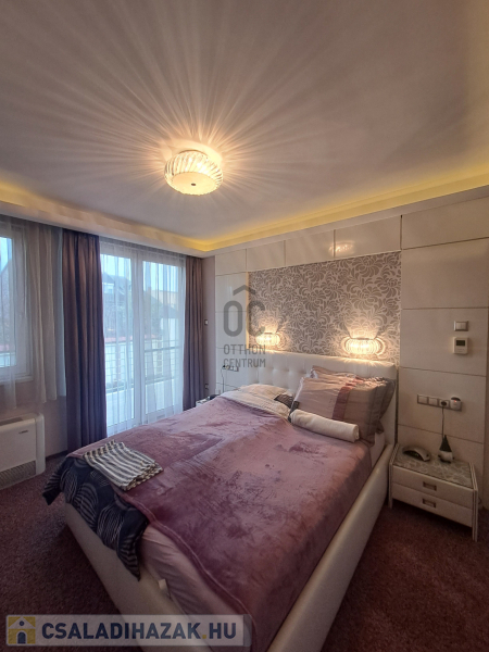 A garázsban két autó parkolása is megoldható, amely különösen praktikus a belvárosi környezetben. A ház modern fűtési rendszerrel rendelkezik, amely gáz alapú fan-coil megoldással működik, míg a mennyezethűtés nyáron biztosítja a kellemes hőmérsékletet. Emellett a padlófűtés is van a házban. A lakásban található beépített bútorok és szekrények, valamint a LED hangulatvilágítás és motoros redőnyök mind hozzájárulnak a modern, kényelmes életvitelhez. A házban magas minőségű gépesített konyhabútor található , központi porszívó is beszerelésre került. A tetőtér engedéllyel történt átalakítása során saját konyha saját fürdőszoba és nappali került kialakításra, amely így akár külön lakrészként is funkcionálhat.