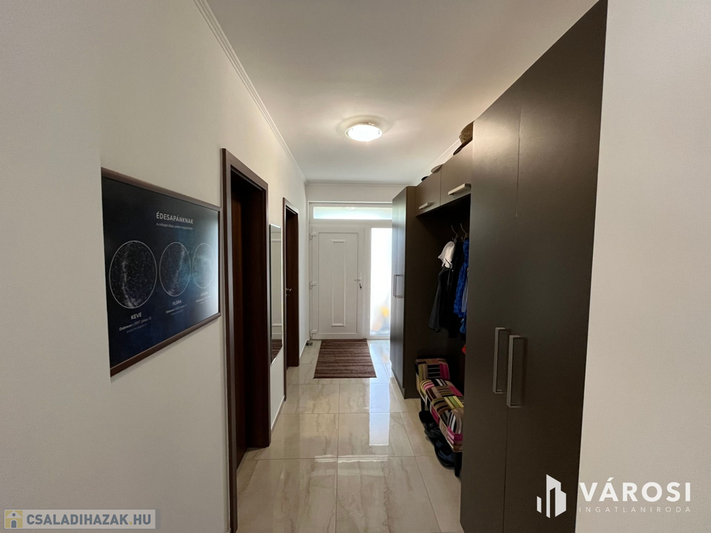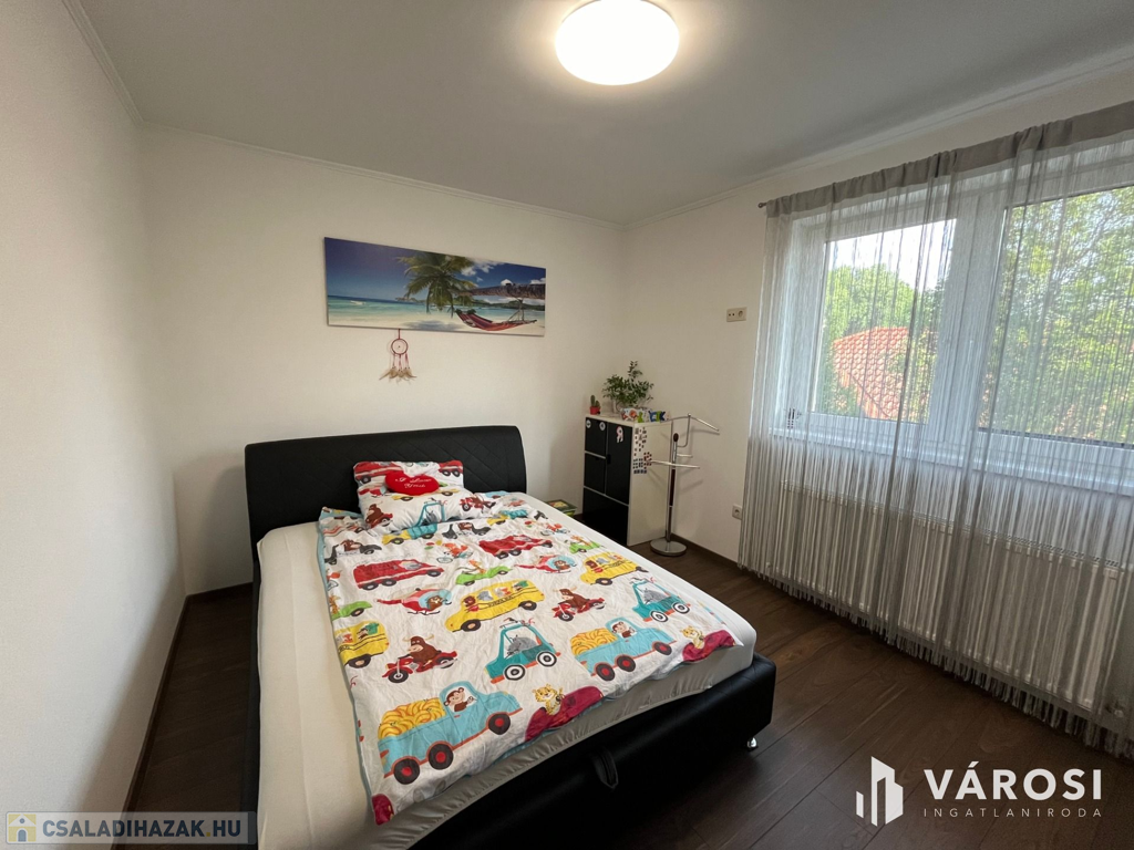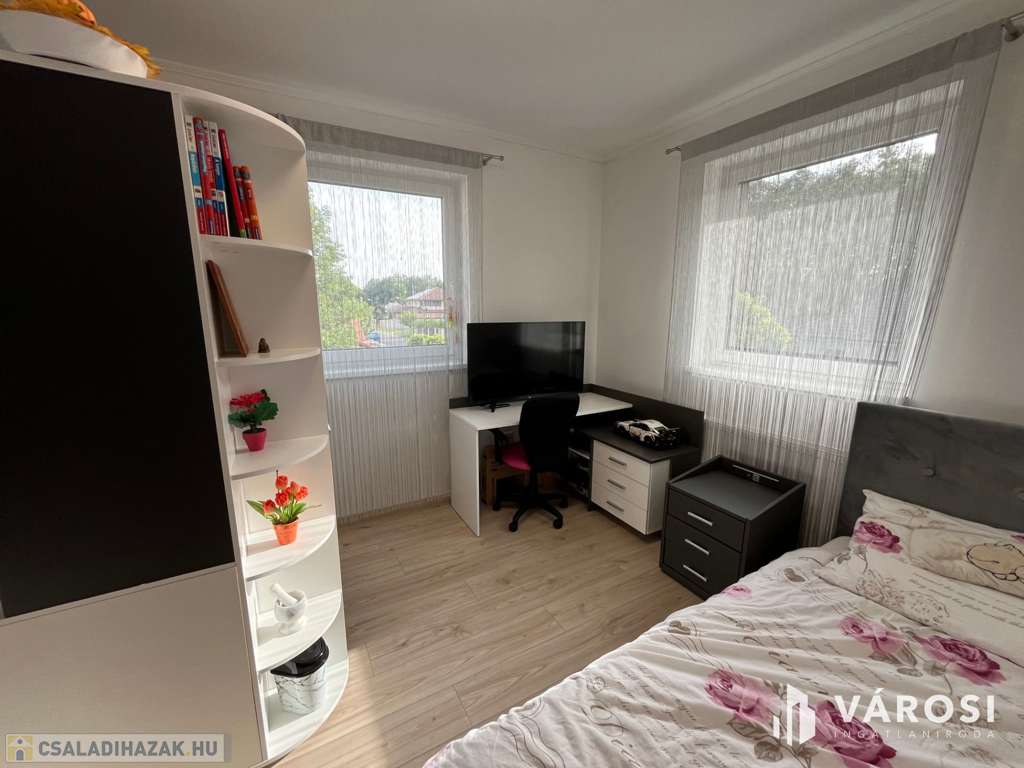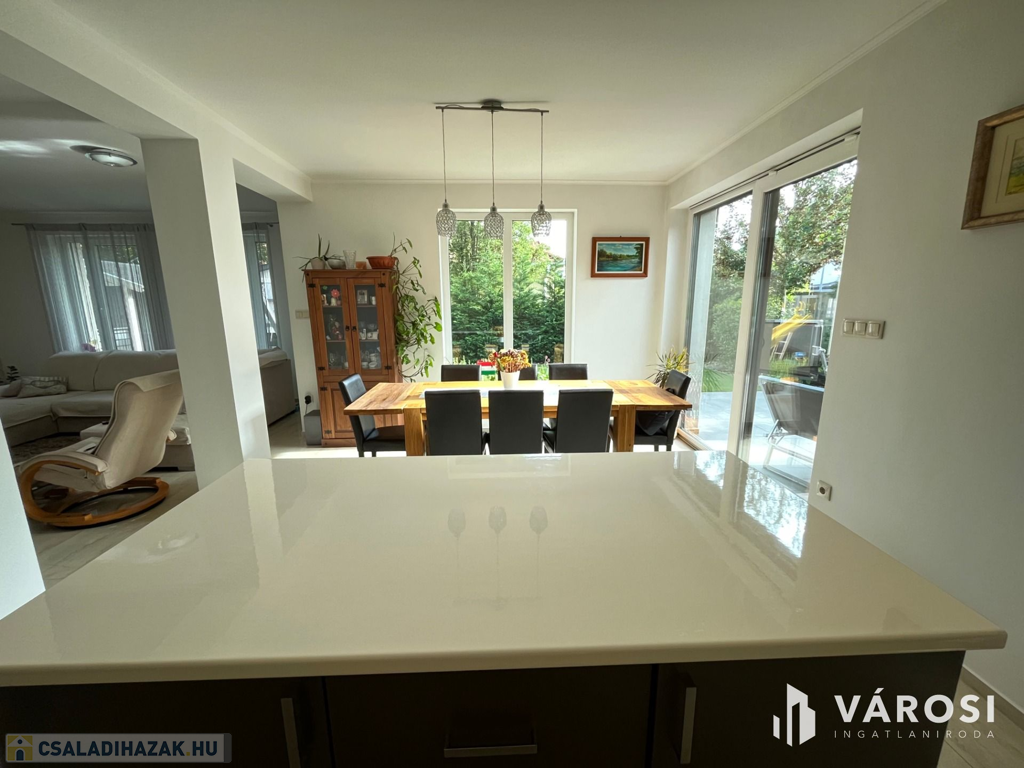 Debrecen Vámospércsi út közelében a Balla lakóparkban, gyönyörű madárcsicsergős zöldövezetben, 180 nm-es 4 szoba nappalis újszerű igényes ház eladó. Az ingatlanhoz dupla garázs tartozik, és szépen parkosított 470 nm-es kert van hozzá, ahol helyet kapott egy nagy fedett terasz, és a hátsó kertben egy gyereksarok játszóházzal. A ház alsó szintjén helyezkedik el a nappali, tágas étkező konyha amelyből közvetlen terasz kapcsolat van, egy szoba és egy zuhanyzós fürdőszoba. A felső szintre érkezve a közlekedőből három hálószoba nyílik és egy kádas fürdőszoba, plusz egy mosókonyha wc-vel. Az ingatlan valóban gyönyörű erdőkkel tarkított csendes zöldövezetben található, ahol tényleg megvan az emberben az igazi otthon érzés. Nézze meg próbálja ki, nem fog csalódni!