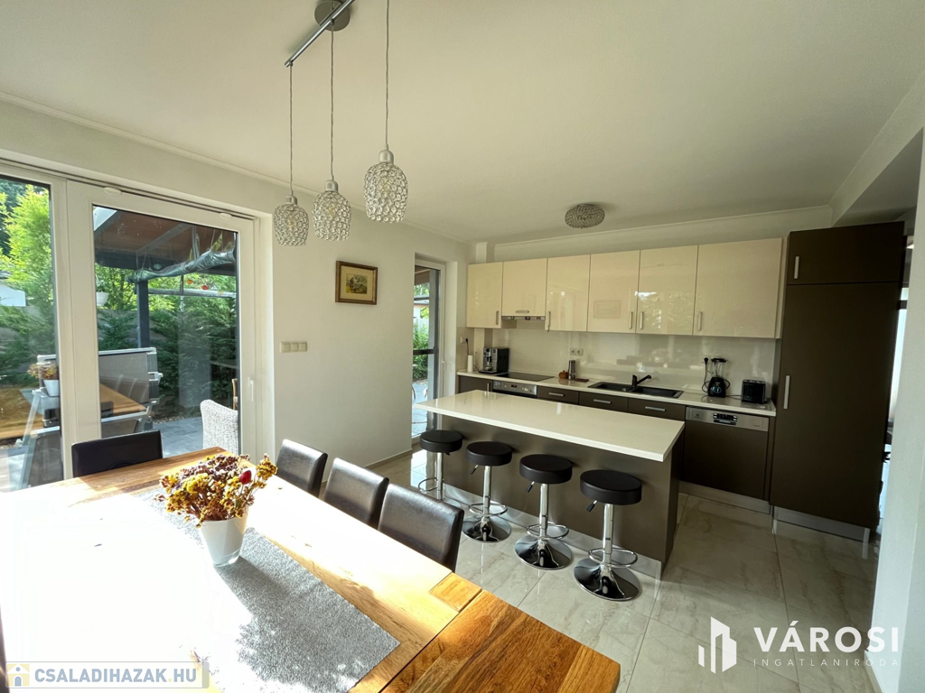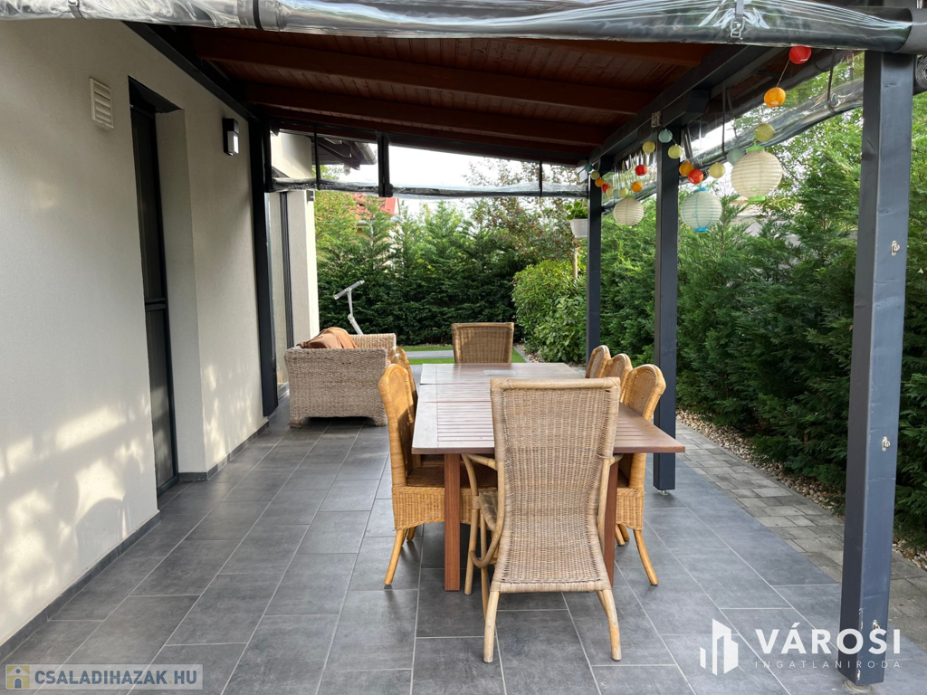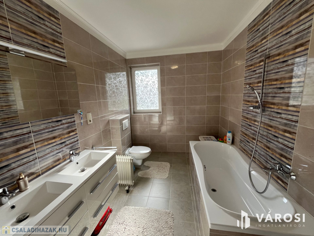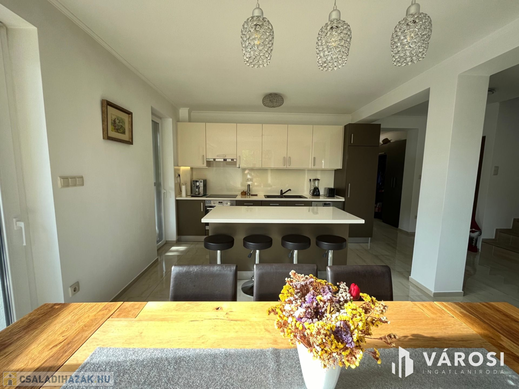 Debrecen Vámospércsi út közelében a Balla lakóparkban, gyönyörű madárcsicsergős zöldövezetben, 180 nm-es 4 szoba nappalis újszerű igényes ház eladó. Az ingatlanhoz dupla garázs tartozik, és szépen parkosított 470 nm-es kert van hozzá, ahol helyet kapott egy nagy fedett terasz, és a hátsó kertben egy gyereksarok játszóházzal. A ház alsó szintjén helyezkedik el a nappali, tágas étkező konyha amelyből közvetlen terasz kapcsolat van, egy szoba és egy zuhanyzós fürdőszoba. A felső szintre érkezve a közlekedőből három hálószoba nyílik és egy kádas fürdőszoba, plusz egy mosókonyha wc-vel. Az ingatlan valóban gyönyörű erdőkkel tarkított csendes zöldövezetben található, ahol tényleg megvan az emberben az igazi otthon érzés. Nézze meg próbálja ki, nem fog csalódni!