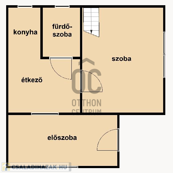 - földszinten szoba + fürdőszoba + konyha-étkező