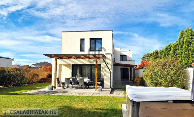 Debrecen csendes, de mégis központi elhelyezkedésű, felkapott városrészében, a Csigekertben várja új lakóit ez a gyönyörű, prémium kivitelezésű 2021-ben épült ház. A családosok számára ideális otthon, amely nemcsak tágas nappalijával és amerikai konyhájával, hanem egyedi tervezésével és modern megoldásaival is lenyűgöz. A konyhában található konyhasziget tökéletes helyszínt biztosít a családi összejövetelekhez, míg a világos terek és a beépített bútorok és szekrények maximális kényelmet nyújtanak.  A házban található LED hangulatvilágítás és motoros redőnyök nemcsak a modern életstílust tükrözik, hanem a komfortérzetet is növelik. Az integrált szúnyoghálók lehetővé teszik, hogy a nyári estéket zavartalanul élvezhesse a kertben, ahol egy rendezett kert és egy jakuzzi található, ideális a pihenéshez és a kikapcsolódáshoz.