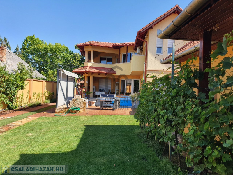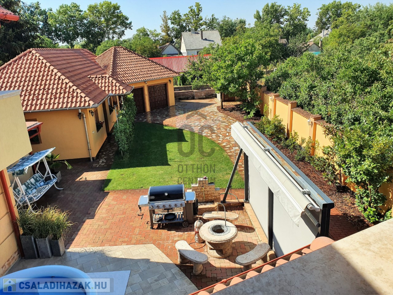 Egyéb extrák: elektromos kert és garázskapu, automata öntözőrendszer, grillező, térkövezett--parkosított kert, led-es esti világítás a kertben, több gépkocsi beállási lehetőség az udvarra.