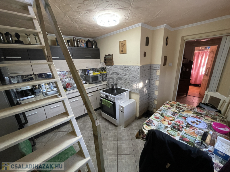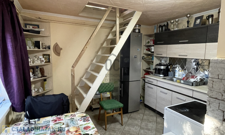 A földszinten található egy szoba, fürdőszoba-wc, előszoba, konyha-étkező, az emeleten pedig egy tetőtéri szoba.