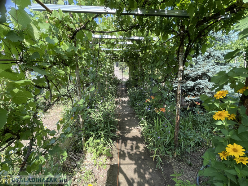 - a kertben gyümölcsfák, szőlőlugas, kertészkedéshez/ önellátáshoz magas ágyás kialakítva