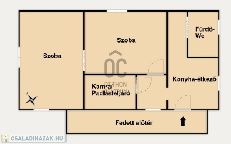 - helyiségei: konyha-étkező, kamra, fürdőszoba-wc, 2 szoba, közlekedő