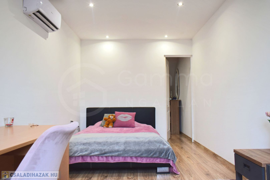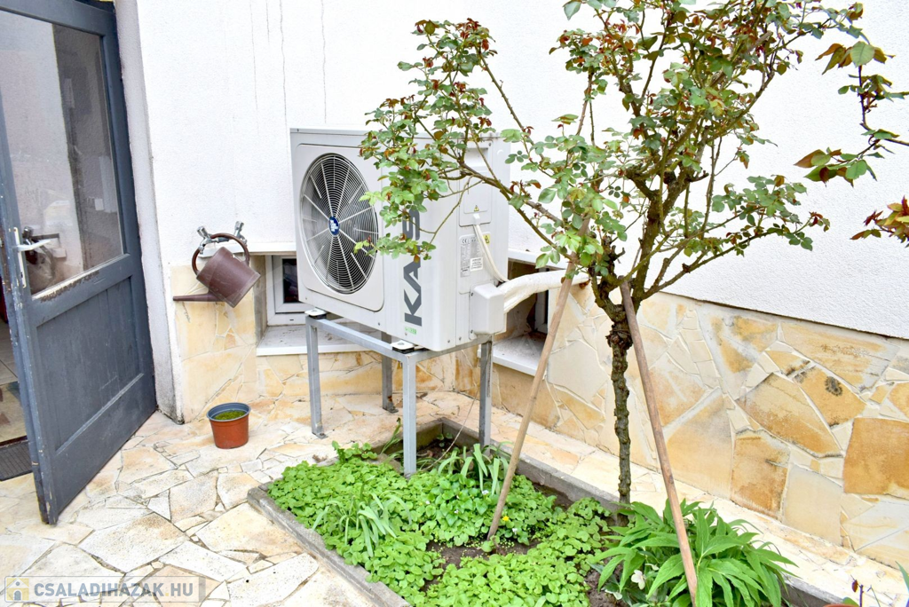 Az eltot szintes, szigetelt (10cm), téglaépítésű ingatlant 2019-ben teljeskörűen felújították. Az elektromos vezetékek cseréjével egyidejűleg kiépítésre került a napelemrendszer (11kW),amely a ház energiahatékony áramellátását biztosítja. A vízvezeték hálózat cseréje megtörtént. A fűtést hőszivattyú biztosítja, padlófűtéssel és radiátor hőleadókkal. Minden helyiség klimatizált(hűtő-fűtő).