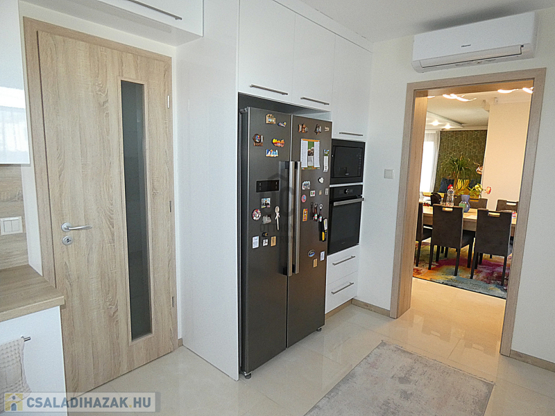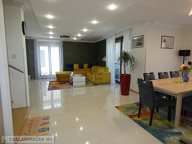 A garázsban akár négy autó is elfér, így a parkolási gondokról sem kell aggódnod. Az ingatlan állapota kiváló, a minimalista kialakításnak köszönhetően pedig modern és világos. A tágas nappaliban LED hangulatvilágítás teszi hangulatossá az esti órákat, az amerikai konyha pedig lehetővé teszi, hogy az egész család együtt élvezze az étkezéseket. Az ingatlanban beépített bútorok és szekrények találhatóak, így nem kell aggódnod az elhelyezés miatt. Az ingatlanban 4 hálószoba és 2 fürdőszoba található, így akár nagyobb családoknak is kényelmes otthon lehet. A terasz és az erkély mérete is ideális, hogy a szabadban is élvezhesd az időtöltést. Az automata öntözőrendszer és a rendezett kert gondoskodik arról, hogy mindig szép és ápolt legyen a környezet. A biztonsági ajtó és a riasztórendszer pedig garantálja a családod biztonságát. Az ingatlan környéke csendes és biztonságos, így a gyerekek is nyugodtan játszhatnak a kertben.
