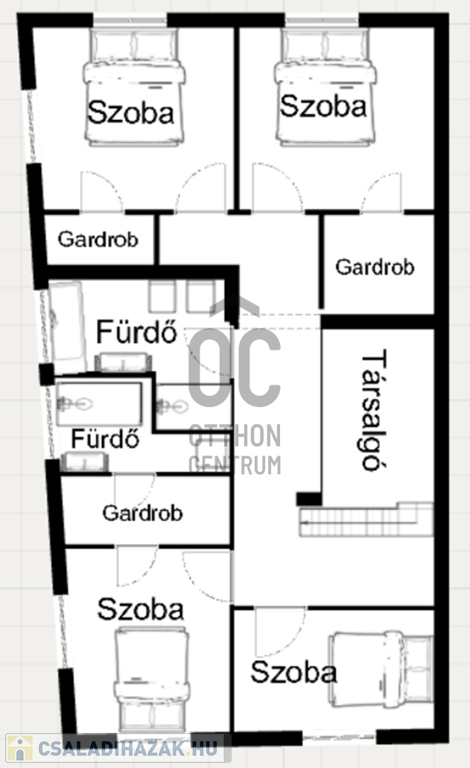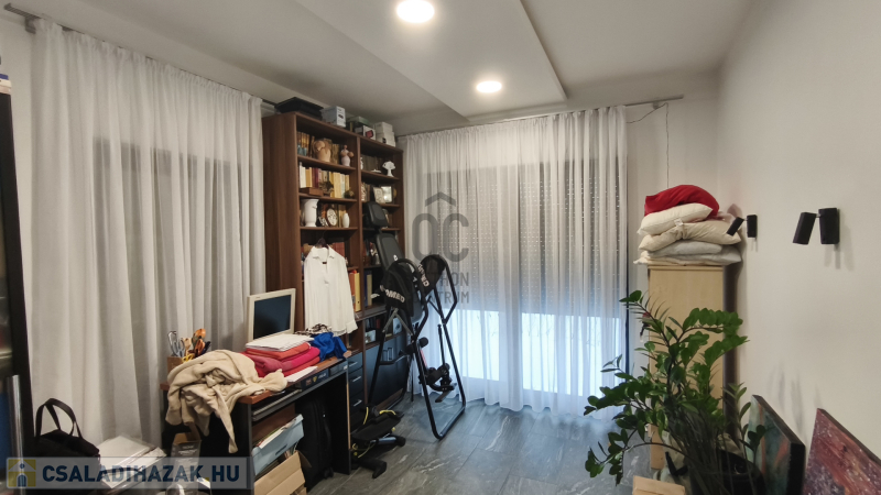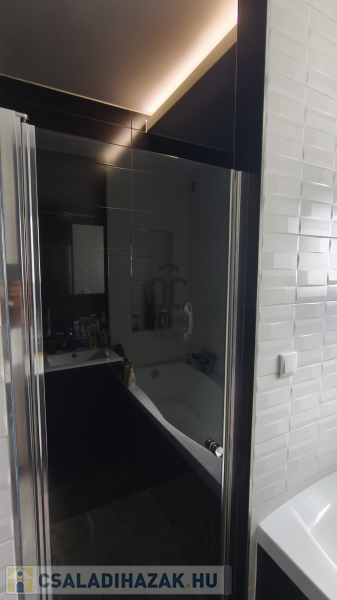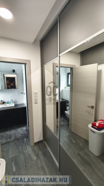 Emelet : 4 különnyíló szoba, amelyből kettő gardrobkapcsolatos, egy gardrob + fürdő kapcsolatos, külön fürdő káddal + zuhanyzóval, gépészeti rész + társalgó