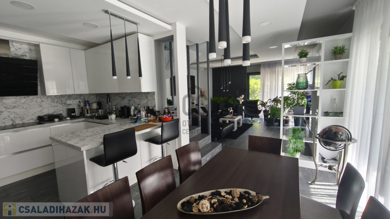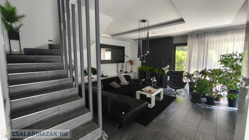 Debrecen elit lakóparkjában , a Liget II - ben eladó, egy 380 m2 - es önálló telken épített, 201 m2 hasznos alpterületű lakás , amelyből 36 m2 a duplagarázs.