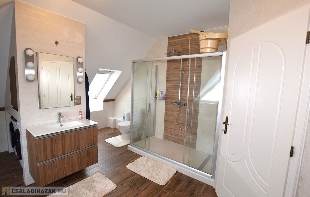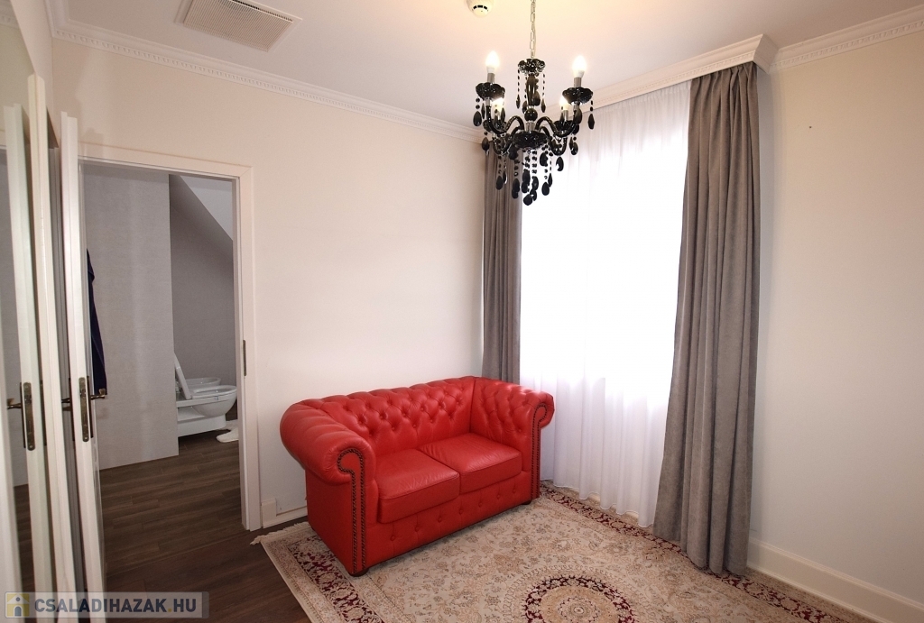 Az emeleten a hálószobák vannak. A gyerekszobákat a közös fürdőszobájuk választja el, gardrób pedig minden szobához tartozik.