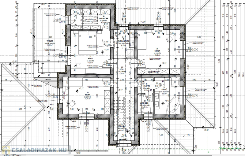 - Földszint : 183,69 m2 + 20,33 m2 fedett terasz