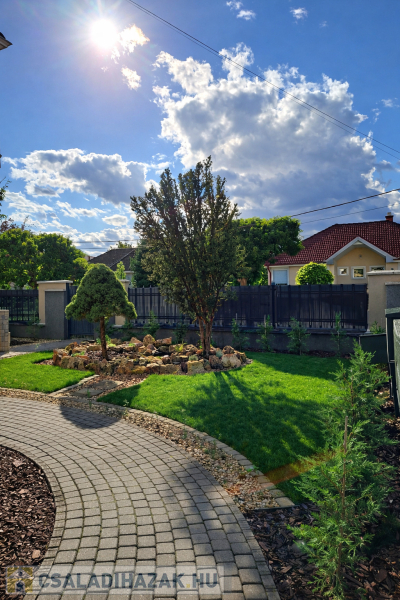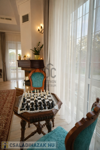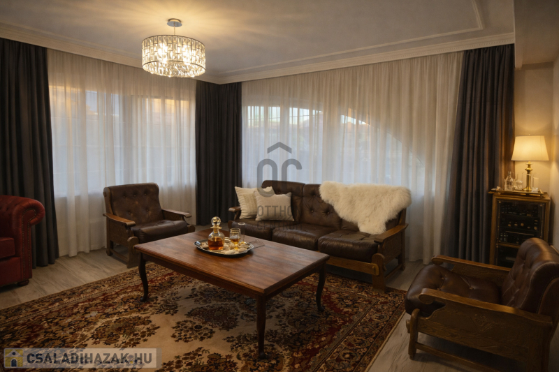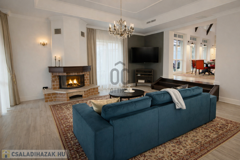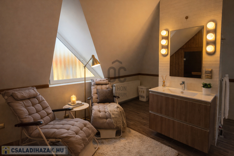 A ház különleges hangulata – a nagy belmagasságú nappali, a kandalló, a szauna és a tágas kert – egy olyan életstílust kínál, amely tökéletes választás azok számára, akik otthonukban szeretnének kikapcsolódni, vendégeket fogadni vagy családi és baráti összejöveteleket tartani.