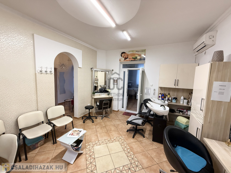•Az épület egyik részében 120 m²-es, működő szépségszalon található