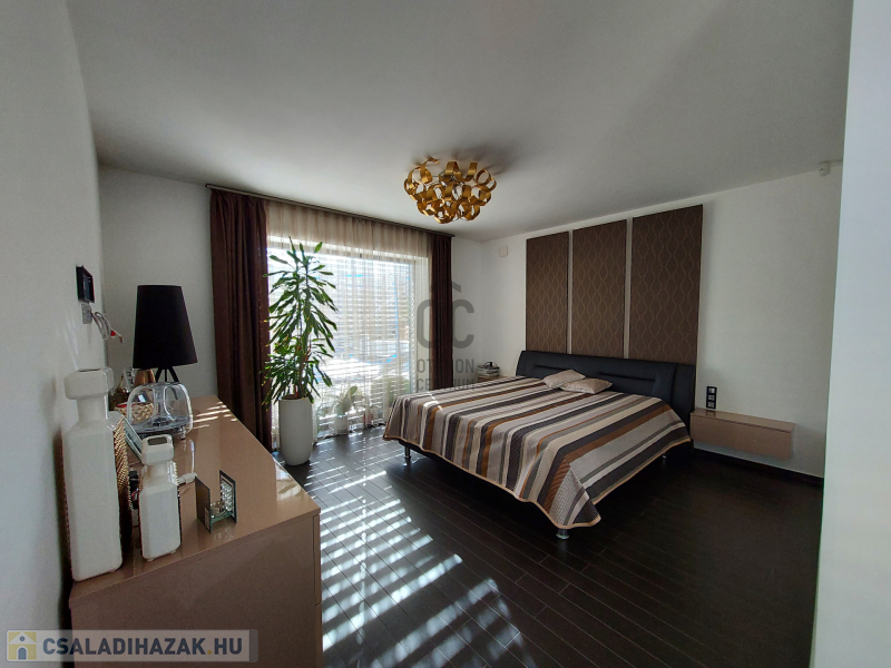 Értékesítésre kínálunk Debrecen- Homokkert csendes utcájában egy igényesen tervezett MODERN stílusú, dupla komfortos, nappali+ 4 szobás, LUXUS önálló családi házat, melynek nettó alapterülete 290 m2.