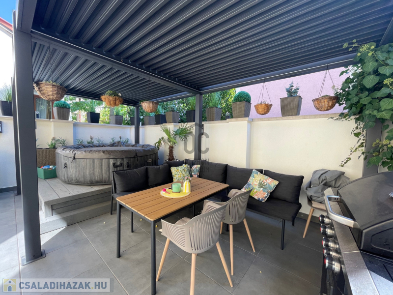 - Tágas, részben fedett terasz: 37 m²