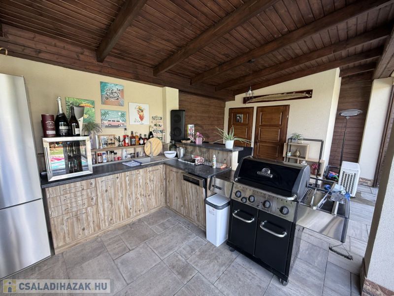 - 13 méter hosszú filagória, mosogatóval, mosogatógéppel, hűtővel, borhűtővel és toalettel