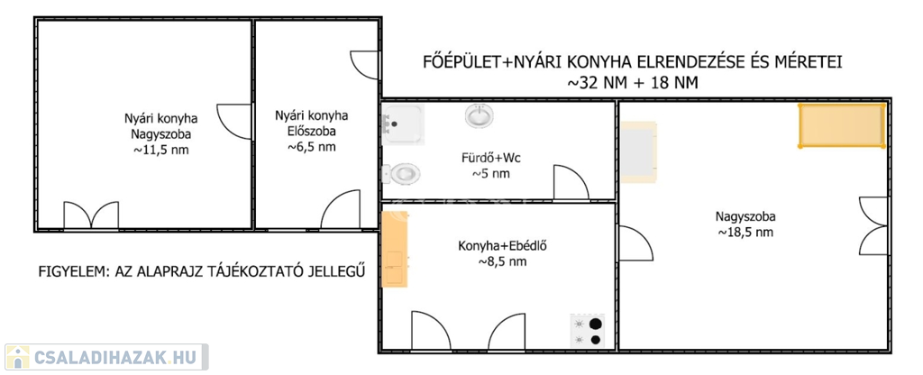 Az épület + nyári konyha hasznos alapterülete 50 nm melyben található: