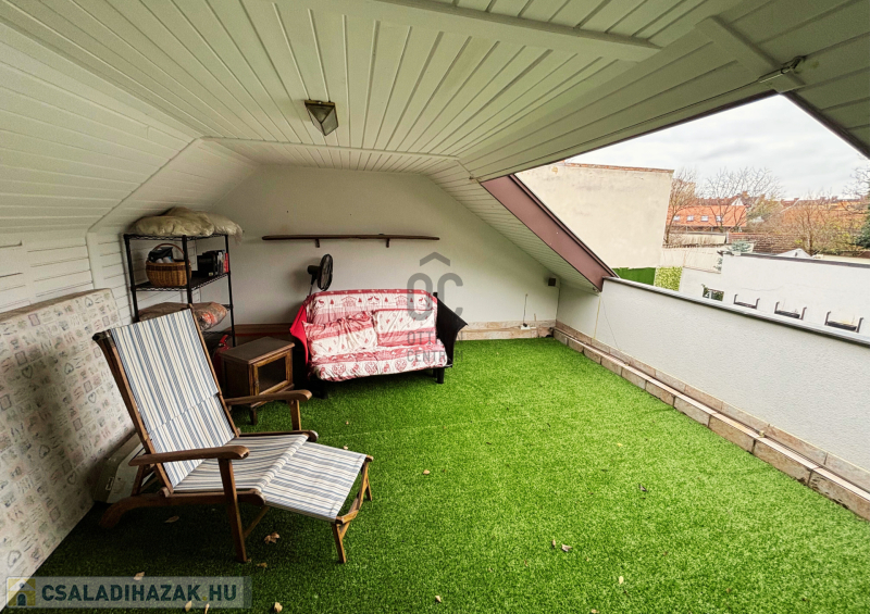 - Az egyik hálóból egy 29 m²-es, félig fedett panorámaterasz érhető el, amely teljesen intim, senki nem lát be, hangulatos, tágas és csodás kilátással rendelkezik. Ez a ház egyik legkülönlegesebb pontja.