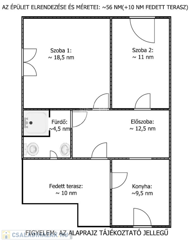 A családi ház hasznos alapterülete 56 nm melyben található: