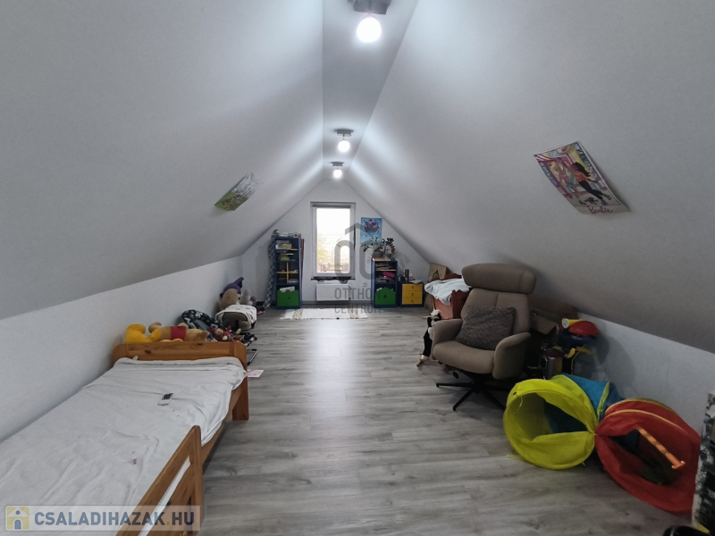 Az ingatlan 2015-ben épült, könnyűszerkezetes technológiával, cserép héjazattal. Nyílászárói fából vannak, hőszigetelt üveggel. Fűtése vegyes tüzelésű kazánnal történik, radiátor hőleadókkal. Fenntartási költsége alacsony, az építési technológiának a homlokzati és födém szigetelésnek köszönhetően. A lenti szinten található tároló helyiségek lehetővé teszik a szobák számának növelését, vagy akár egy külön álló apartman lakás kialakítását is. A tetőtérben még akár + szobák kialakítása is lehetséges. A fedett, fűtéssel ellátott, téliesített terasz a hidegebb hónapokban is kellemes helyszín lehet a családi összejöveteleknek. A telek nagyságának köszönhetően ideális lehet a lakhatás mellett gazdálkodásra, telephelynek is. Az ingatlan művelésből való kivonása csak a ház ( gazdasági épület) alapterületét érinti, a telek többi része még művelés alatt álló osztatlan közös tulajdonú zártkert,használati megosztással, kerítéssel ellátva! Engedéllyel épült, felrajzolt ingatlan. A telek utcafrontja 31 méter, így a Diószegi út melletti elhelyezkedése kivételes lehetőséget nyújt akár vállalkozás számára is!
