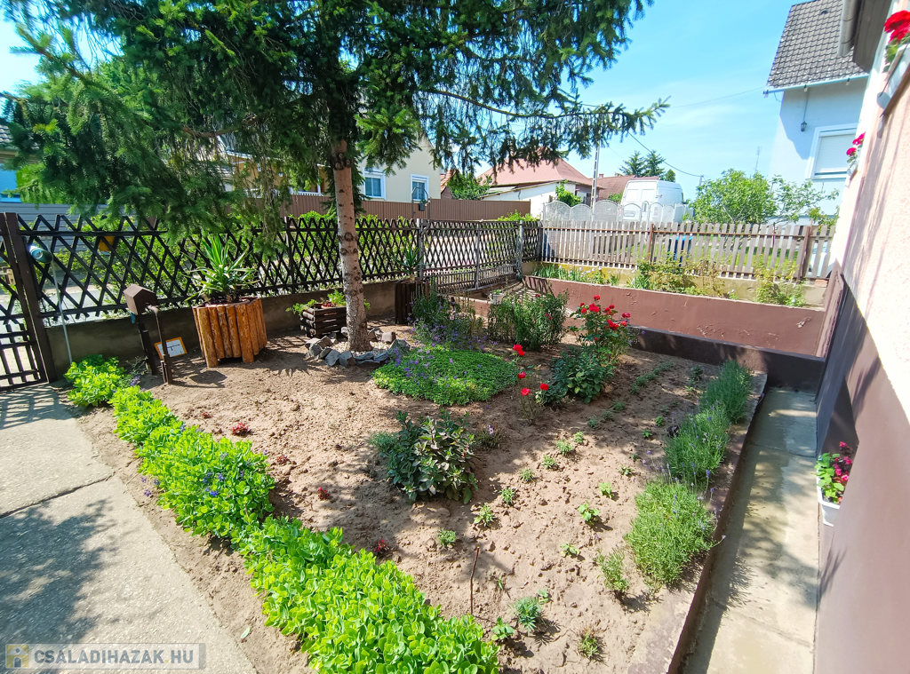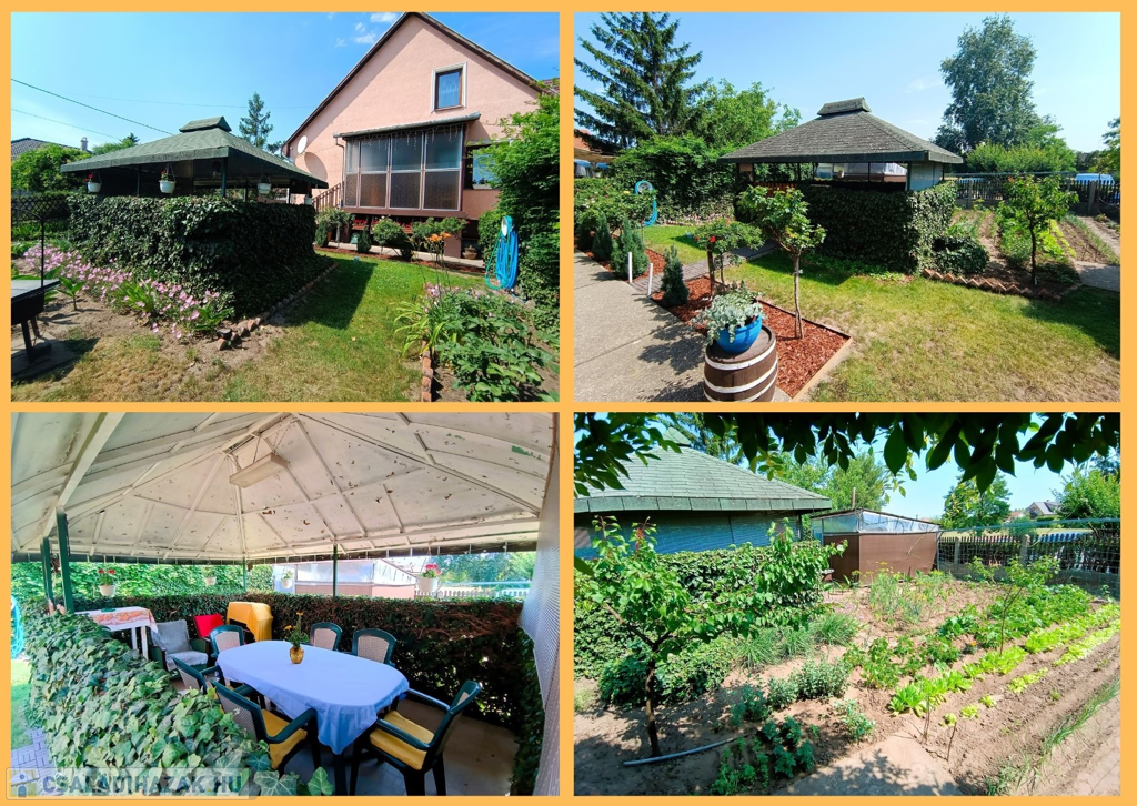 A telek nagysága (630m²) és felszerelése minden igényt kielégít. Filagóriája pihenés, családi programok, sütögetések helyszíne lehet. Kertészkedni is kiváló, de állattartásra is alkalmas, tyúkólak, illetve disznóól is megtalálható rajta. Autóval is beállhatunk az udvarra, de a ház előtt is kényelmesen parkolhatunk.