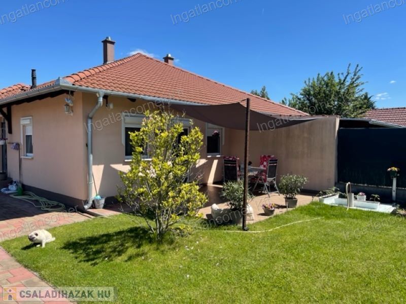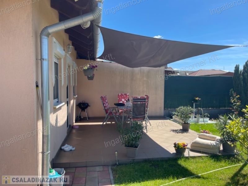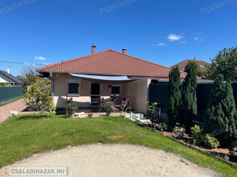 Délegyháza központhoz közel eső részén eladó egy 2011-ban épült, nagyon szép állapotban levő ikerház egyik lakása. Az ingatlan nettó 75 m2-es hozzátartozó 15 m2-es fedett terasszal és egy 31 m2-es külön álló garázzsal. A Pro-concept technológiával épült, alacsony rezsijű amerikai-konyhás nappali étkezővel, három hálószoba, fürdőszoba, káddal, külön wc. Fűtése radiátorral megoldva, kombi gáz cirkóval amely a meleg vizet is szolgáltatja. Nyílászárók műanyagból lettek beépítve redőnyökkel és szúnyoghálóval. A telek 474 m2-es összközműves amelyben helyet kapott egy minden engedéllyel rendelkező 30 m2-es beton alapon lévő garázs is, aminek az egyik fele jelenleg kozmetikai szalonként üzemel. Itt áram és vizesblokk is van, de bármely más tevékenységre is használható. A telken van fúrt kút, gyümölcsfák, épített bográcsozó, medencének kialakított hely is. Igényes belső burkolattal rendelkező házba csak költözni kell. A konyhabútor a gépekkel az árban van. Tavak a közelben találhatóak. Közlekedés jó, Vasút állomás, buszmegálló , központ, óvoda kb. 5 perc sétára található.