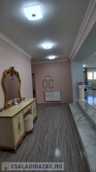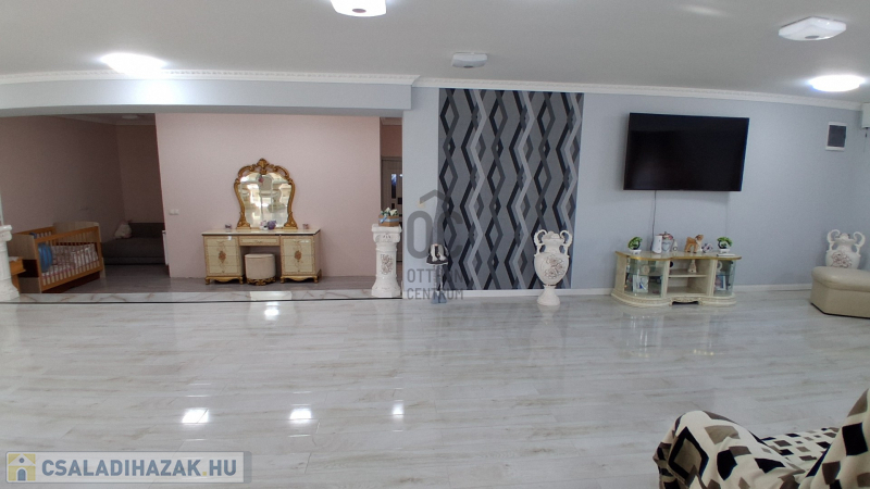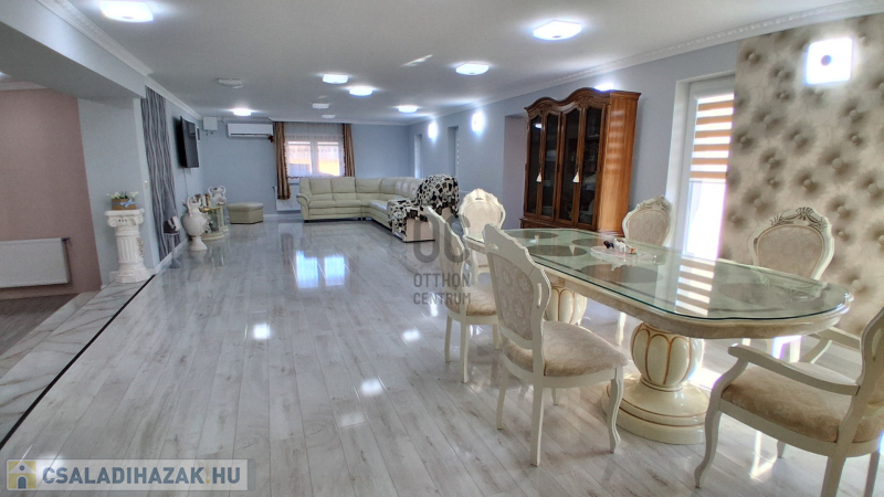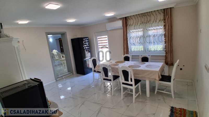 A ház összhatása teljes mértékben új építésű érzetet nyújt – minden burkolat, gépészet és műszaki megoldás korszerű.