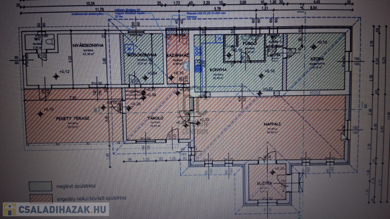 - 176 m² lakóház + 30 m² fedett terasz- a jelenlegi 3 szoba akár 5 szobává is alakítható, melyhez minden feltétel adott