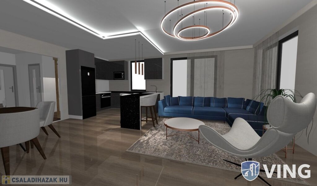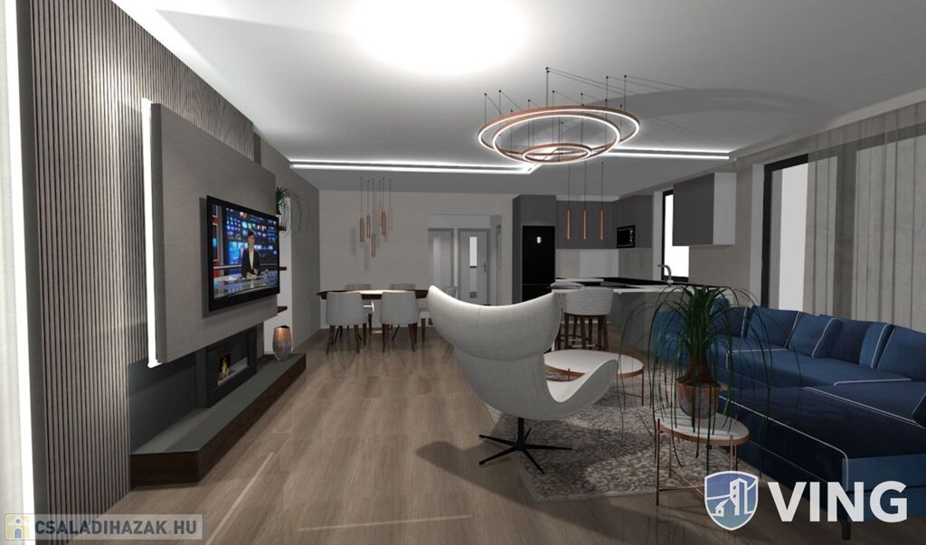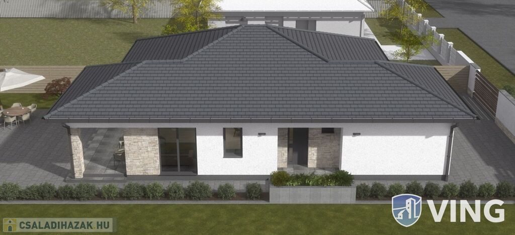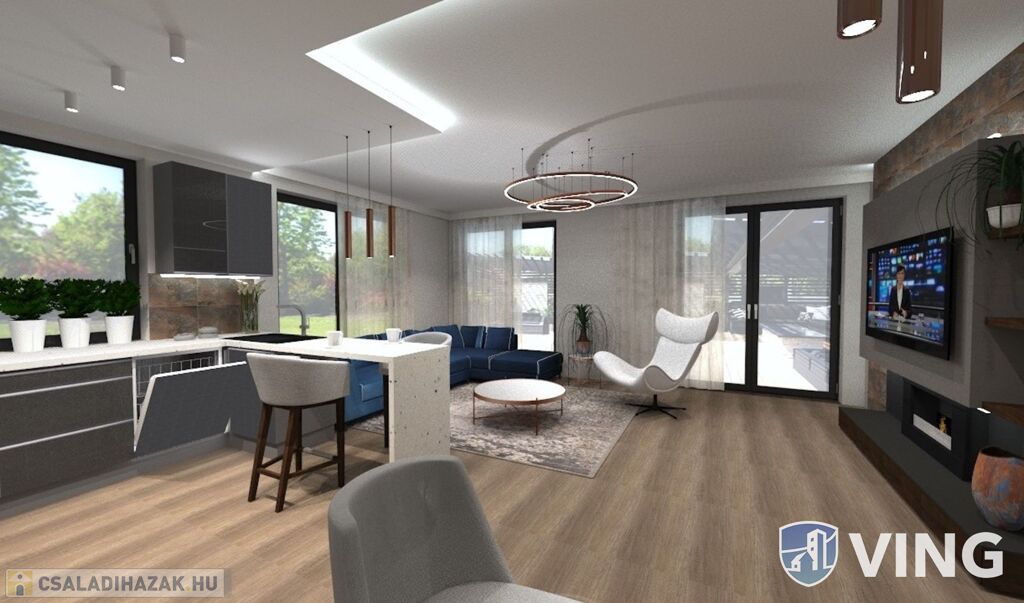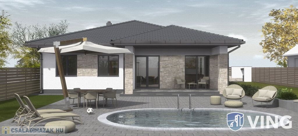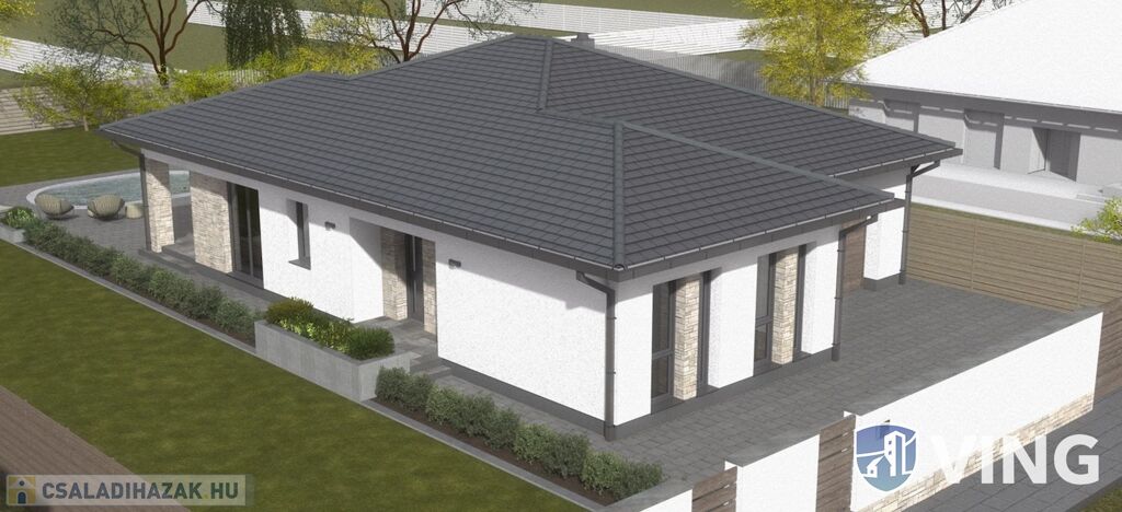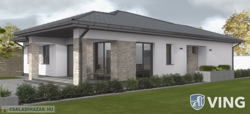 A hirdetésben szereplő ház 145 m2 alapterületű, amerikai konyhás nappali + 4 hálószobás elrendezésű 2 fürdőszobával és dupla garázzsal. Igénybe vehető rá minden fajta állami támogatás és CSOK+ hitel, illetve ÁFA visszaigénylés is!