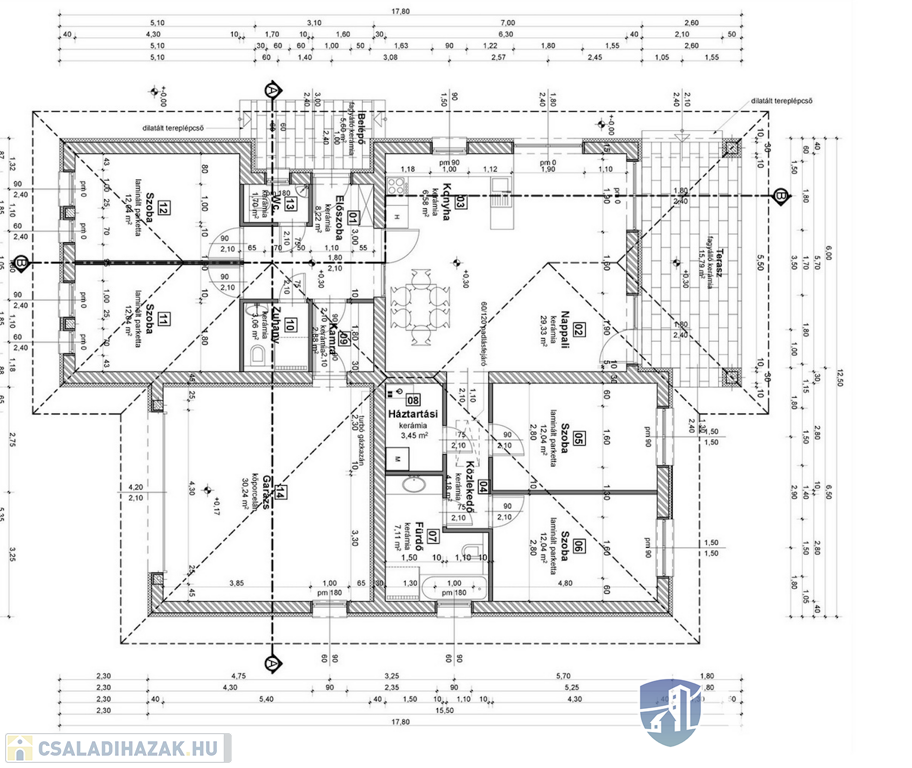 - szeglemezes, rácsos szerkezetű szerelt födém 30 cm hőszigeteléssel