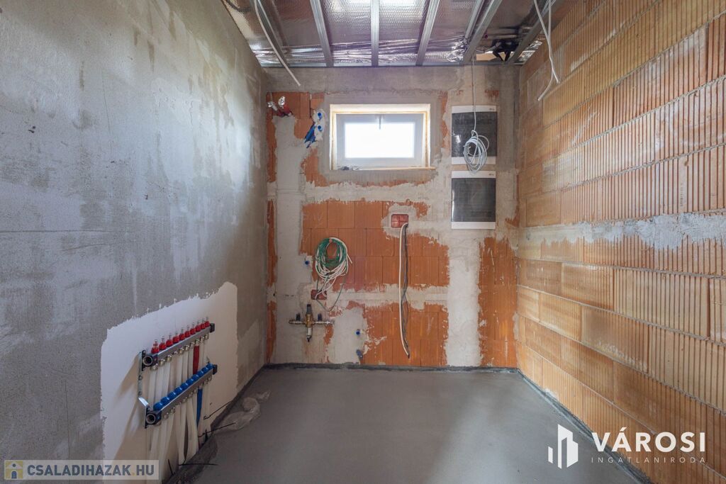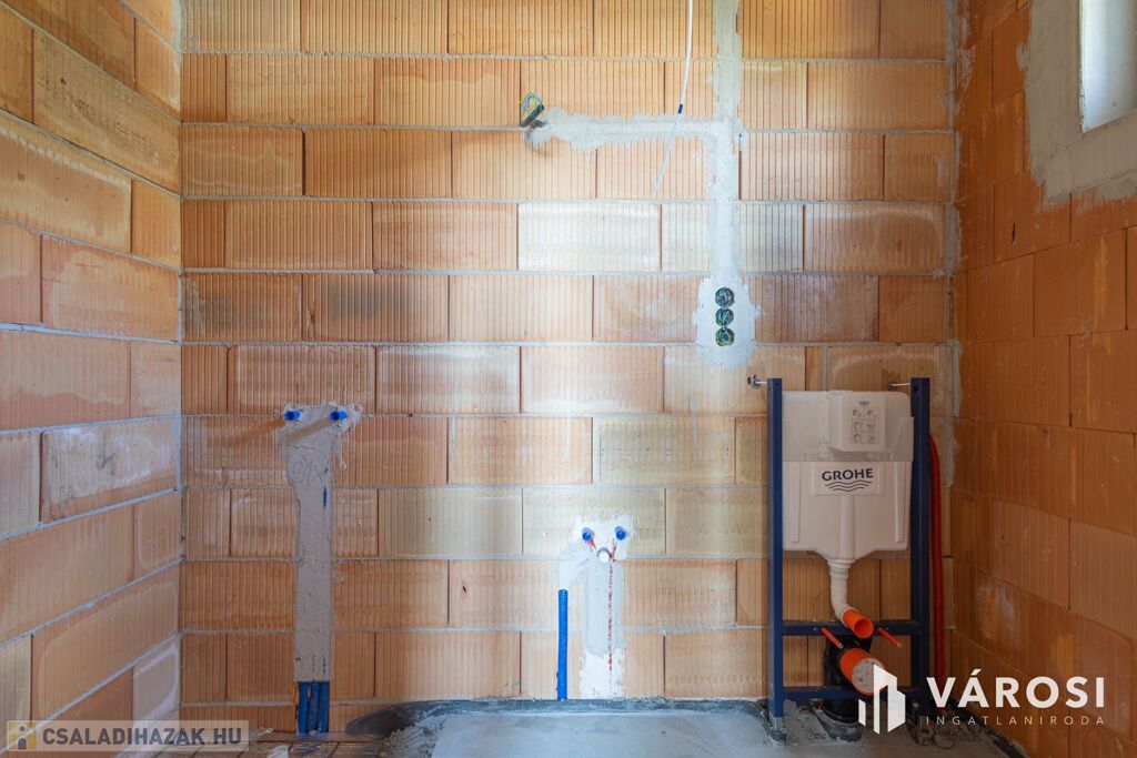 A burkolatok kiválasztása és a belső dizájn megálmodása új tulajdonosára várnak, akinek igényei szerint fejezik be a házat.