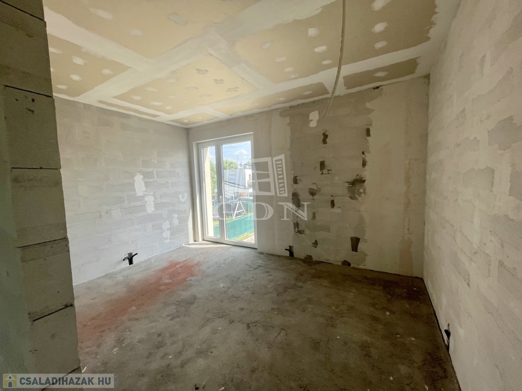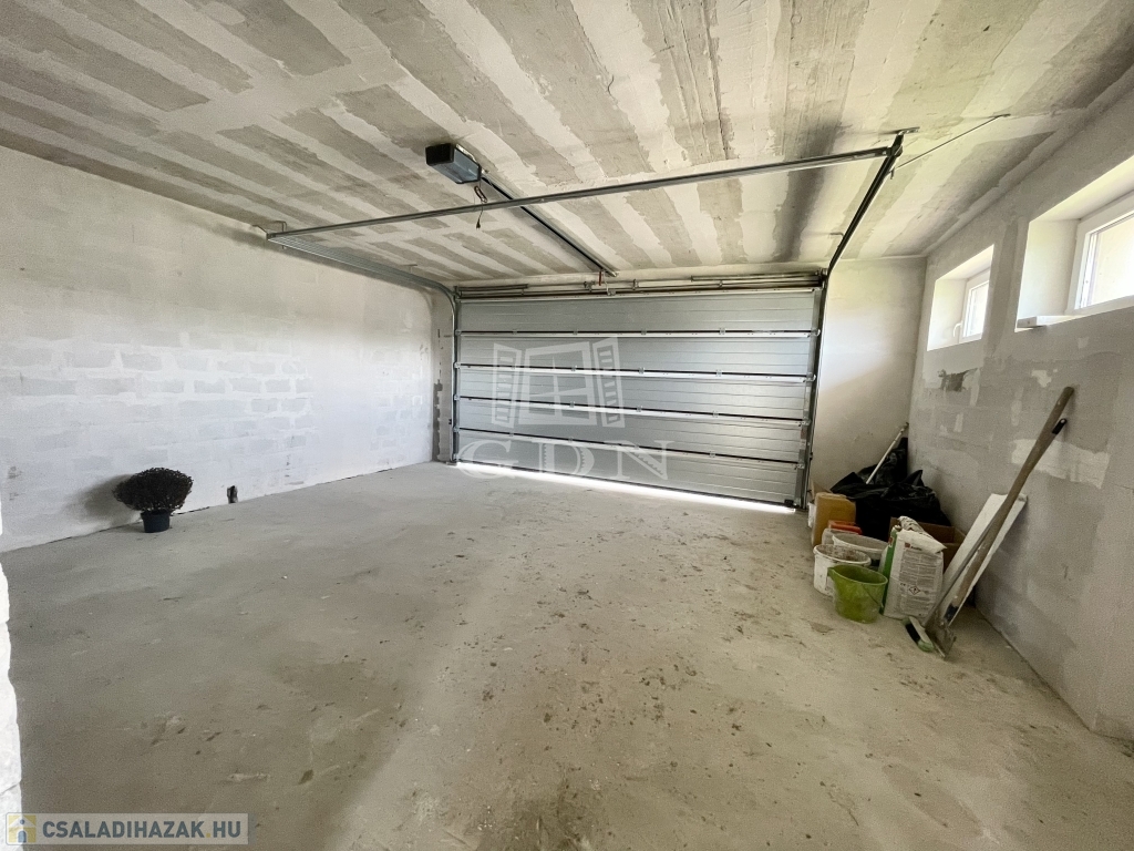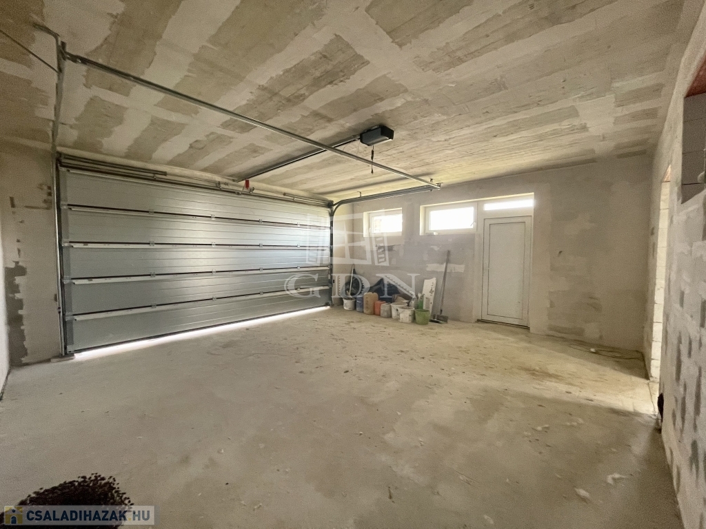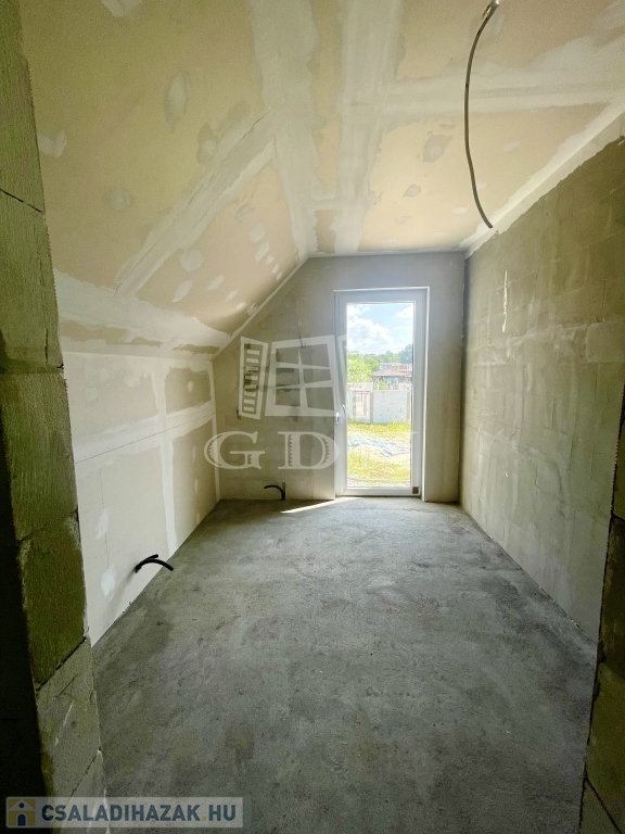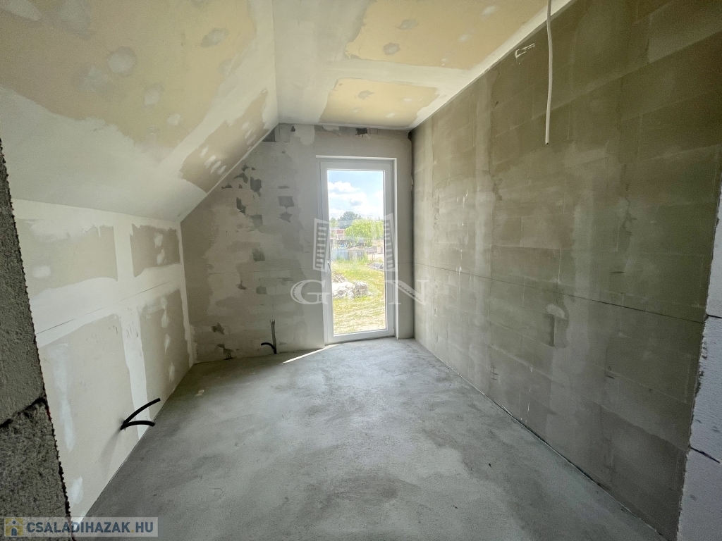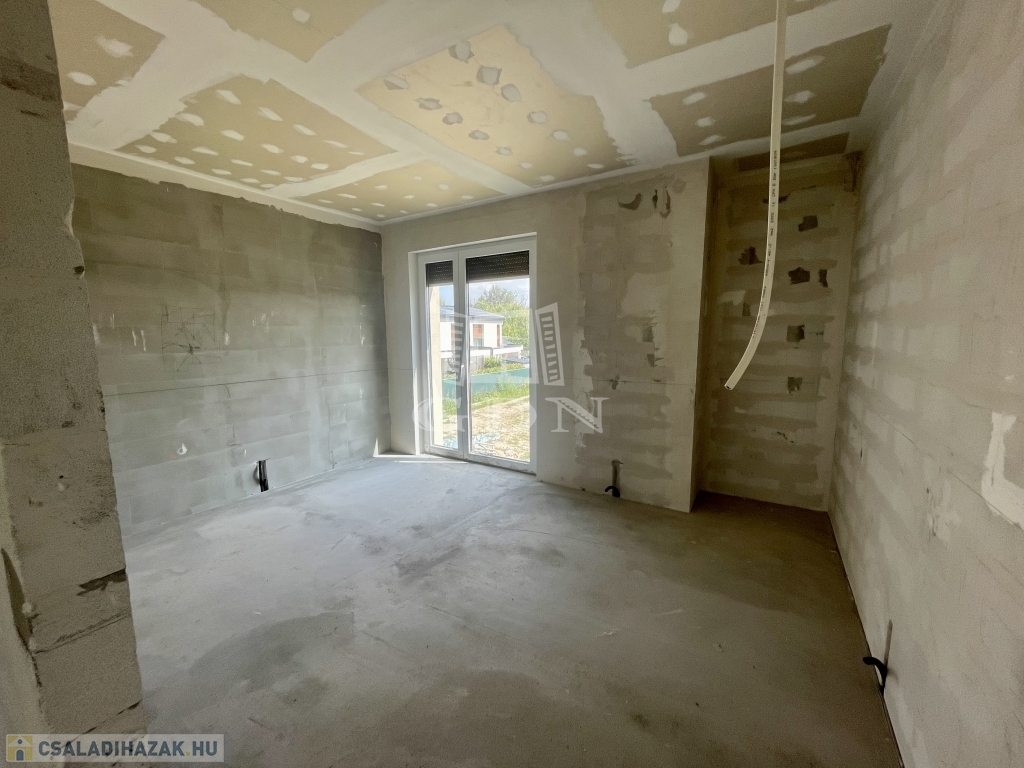 Tető alatt van, bent vannak a nyílászárók redőnnyel és szúnyoghálóval, A ház szigetelve és színezve van. A válaszfalak állnak, a fűtés és elektromos hálózat elő van készítve, be van csövezve.